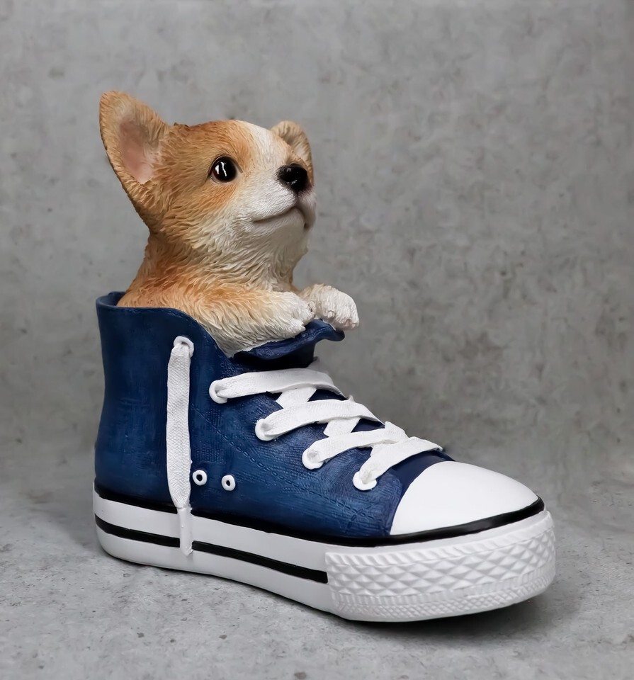 ? Our shoes puppy collection features a variety of dog breeds nestled adorably in a sneaker shoe. Each shoe is unique with its own characteristics and colors, just like the puppy it holds! This sculpture is the perfect gift for those in your shopping list that loves sneakers and puppies!