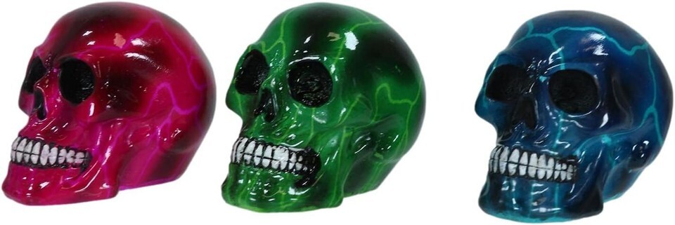 - Ebros Lightning Bolts Colorful Skulls Mini Figurines Set of 3 Skeleton Head
