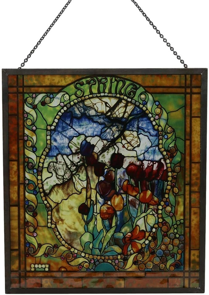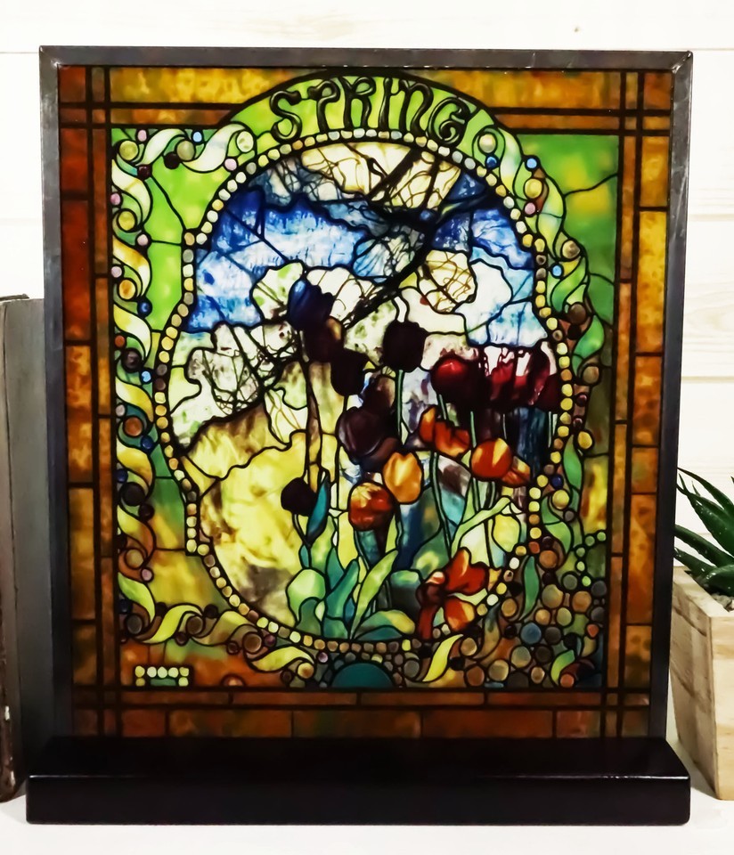 - Ebros Louis Comfort Tiffany Four Seasons Spring Stained Glass Art With Base
