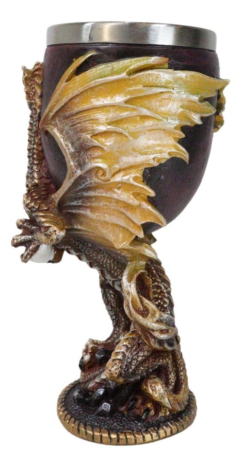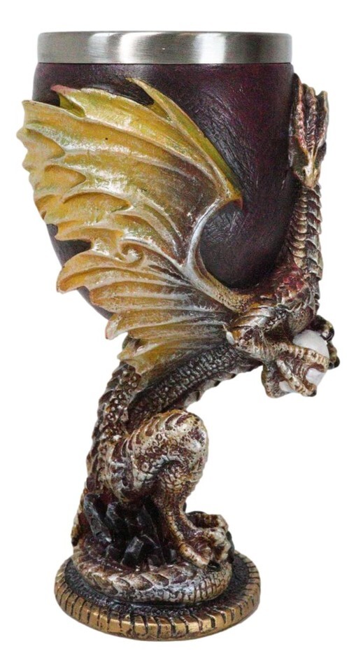 - Ebros Maroon And Gold Medieval Dragon Wyvern Holding Egg Wine Goblet Chalice 5oz