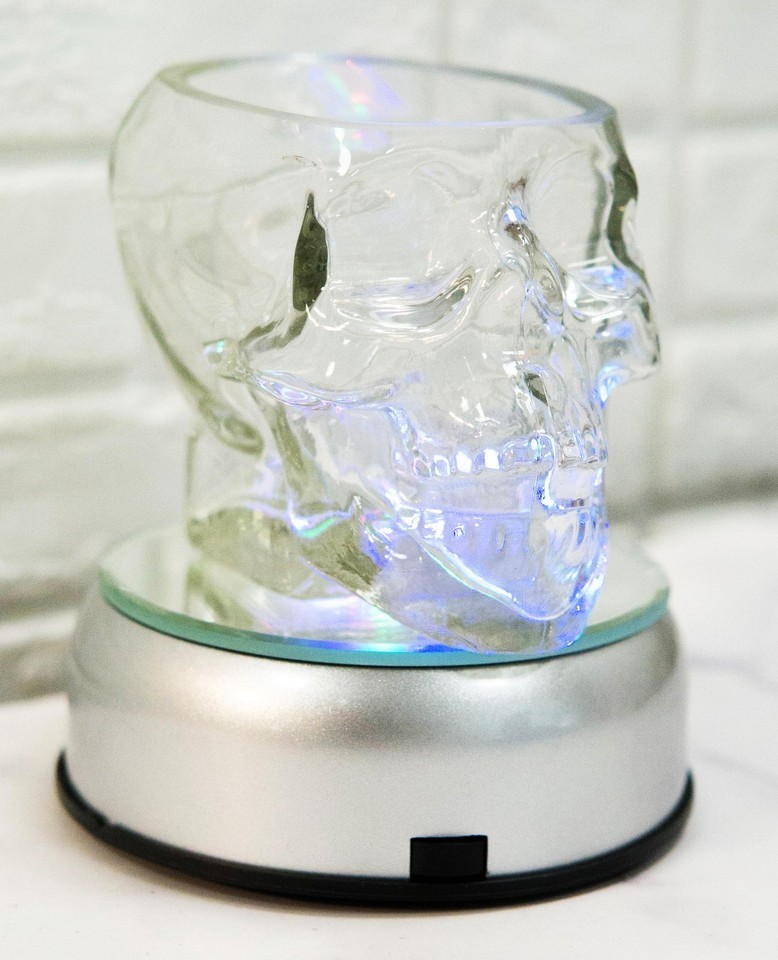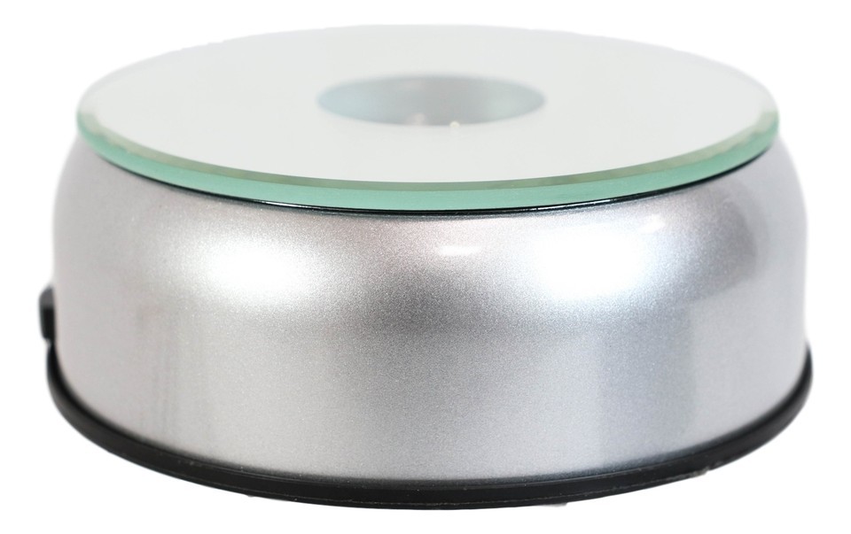 ? 7 COLORFUL LED DISPLAY: 7 Colorful LED Lights display your favorite crystal or acrylic glass figurine or jewelry or anything transparent/translucent within 3.75 inch(diameter) round display, 1.5" High. Bright LED lamps bring out the beauty of geometrical glass crystals, acrylics, glow in the dark jellyfish glass and others. Skull glass in photo not included with the LED base.