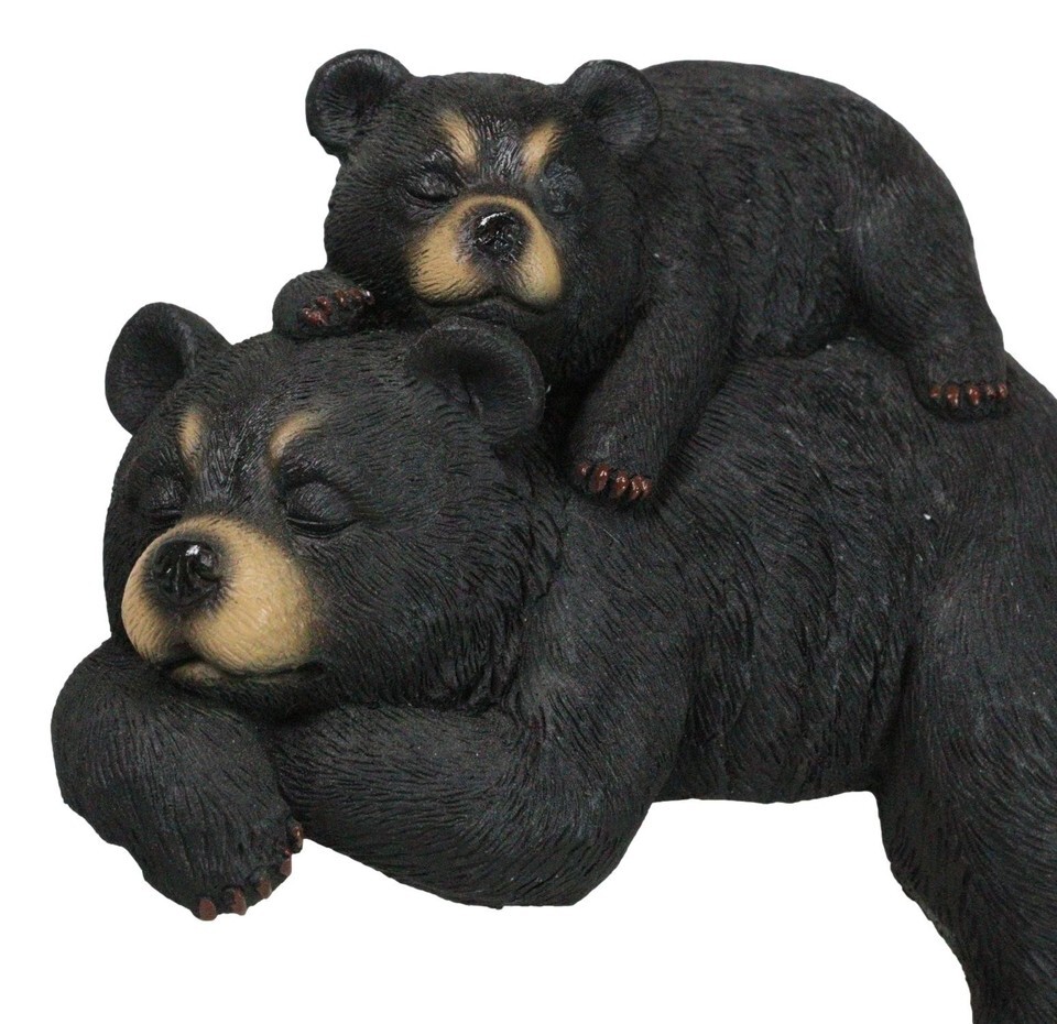 - Ebros Rustic Forest Black Mama Bear & Cub Cuddling Shelf Snoozer Sitter Figurine