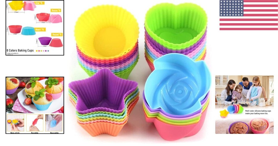 Eco-Friendly 24 Silicone Cupcake Liners - Easy Clean Non-Toxic Baking Molds ? ? ? ? ? ? ? ? ? ? ? ? ? ? ? ? Eco-Friendly 24 Silicone Cupcake Liners Easy Clean Non-Toxic Baking Molds Features: Made from food-grade silicone that is safe and eco-friendly. Vibrant colors and playful shapes add fun to family baking - stars, hearts, and roses! Reusable and durable, designed for countless baking adventures. Non-stick and dishwasher safe for effortless cleanup. Odor-resistant for a fresher baking experience. Includes a versatile set of 25 pieces for larger gatherings or school projects. Benefits: Encourages family bonding through fun and safe baking activities. Endless opportunities for creativity and teamwork as children experiment with shapes and colors. Multi-functional - great for cupcakes, mini desserts, frozen treats, or organizing small items. Promotes eco-conscious baking with reusable materials. Why choose our Eco-Friendly Silicone Cupcake Liners? Transform your family baking sessions into delightful adventures with our Eco-Friendly 24 Silicone Cupcake Liners. Made from non-toxic, food-grade silicone, these vibrant and playful molds add color and creativity to your kitchen while ensuring a safe baking experience. Perfect for little hands, they are flexible and durable, allowing for endless baking memories without worry. Cleanup is a breeze with these non-stick, dishwasher-safe molds, giving you more time to bond with your loved ones. Not just for cupcakes, their versatility lets you create mini desserts, frozen treats, or even organize small items, turning every activity into a fun learning experience. Don?t just bake?create lasting memories! Add these silicone baking cups to your kitchen today and let the fun begin! Shipping Free Fast Shipping - We offer free shipping to most of the USA with a normal delivery time of 3-7 days. However, due to the current situation, additional delivery time (up to 3 weeks) may be required for some items. Alternative Carriers - We may use alternative carriers (e.g. USPS, FedEx, UPS, etc.) to ensure your package arrives safely and on time. Due to the use of multiple carriers, we are unable to provide a tracking number automatically. Handling Time - Orders are processed and shipped within 1-2 business days of receiving cleared payment. Shipping Restrictions - Shipping to Alaska, Hawaii, Puerto Rico, Guam, and other US territories may incur shipping charges or delivery restrictions. Please contact us before ordering, or your order can be refunded/cancelled. State Restrictions - There may be restrictions based on your state of purchase. For example, certain items may not be shipped to California due to state regulations. Contact for Tracking Updates - If you require tracking updates or have any concerns about the delivery of your order, please feel free to contact us, and we will be happy to assist you. Return 30-Day Hassle-Free Returns - We want you to be completely satisfied with your purchase. If you are not, you can return the item within 30 days of receiving it for a full refund or exchange. Easy Return Process - To start a return, simply contact us and we will provide you with a prepaid return shipping label and detailed instructions. Restocking Fee - There are no restocking fees for returns. However, the buyer is responsible for return shipping costs if the return is not due to a seller's error. Refund Processing Time - Refunds will be processed within 5 business days of receiving the returned item in its condition. Payment We accept all major credit cards, PayPal, and Apple Pay for your convenience. Your payment information is secure and encrypted to ensure a safe and seamless transaction. Please complete your payment within 3 days of purchase to avoid any delays in shipping. Feedback Your feedback is extremely important to us. We strive to provide the best products and customer service possible. If you are satisfied with your purchase, please take a moment to leave us a positive review. If you have any concerns or issues with your order, please contact us before leaving negative feedback. We are committed to resolving any problems and ensuring your satisfaction. Contact Us If you have any questions or concerns, please feel free to out to our customer support team. You can contact us through the messaging system. We are available Monday to Friday, 9:00 am to 5:00 pm EST, and we will do our best to respond to your inquiry within 24 hours. Buy it now and enjoy a pleasant shopping experience! Model: Silicone Cupcake Liners Unit Quantity: 1 Material: Silicone,Food-Grade Silicone,Reusable,Eco-Friendly,Non-Toxic Character: Silicone Cupcake Liners Features: Dishwasher Safe,Easy Clean,Non-Stick,Odor-Resistant Shape: Round Type: Cupcake Liners Color: Multicolor Size: Standard Number in Pack: 24 Occasion: All Occasions Item Diameter: 2.75 in