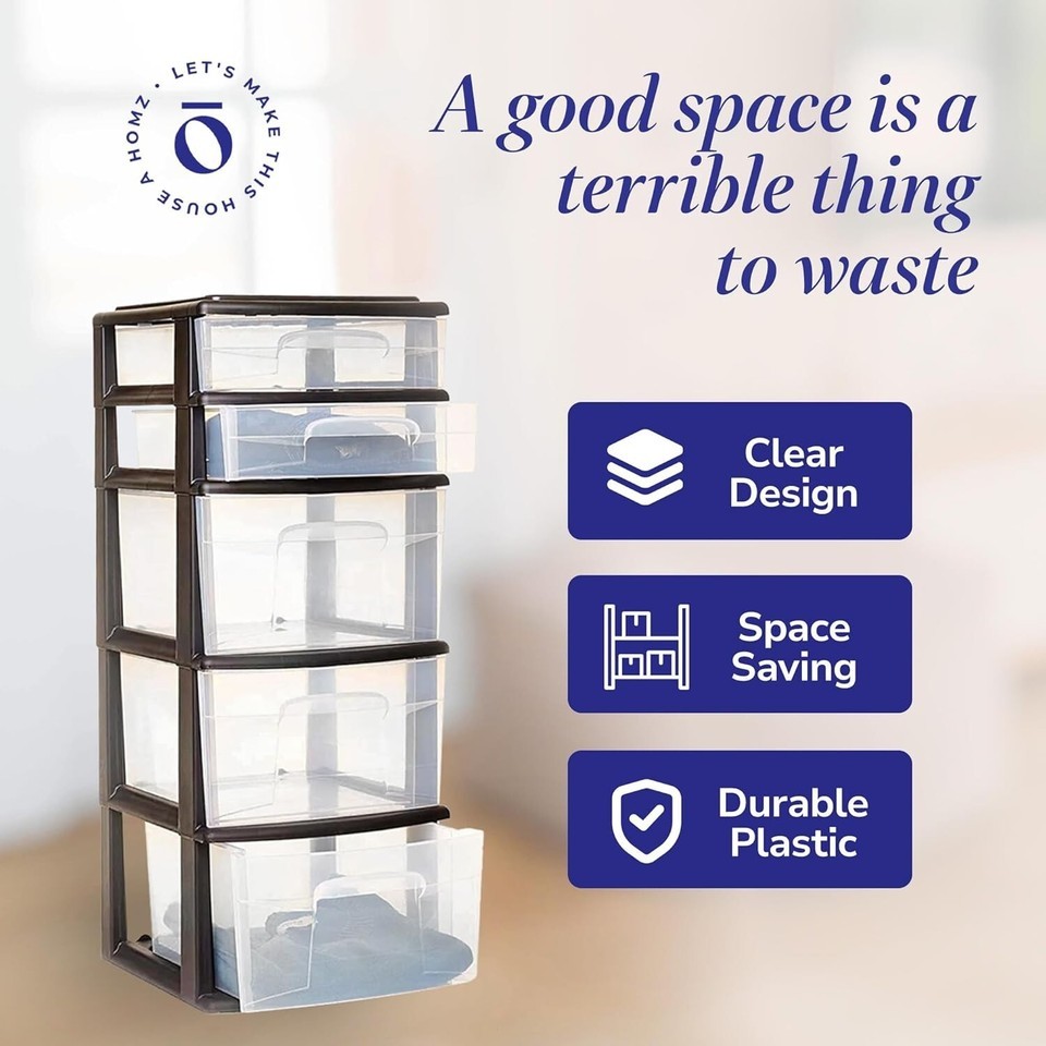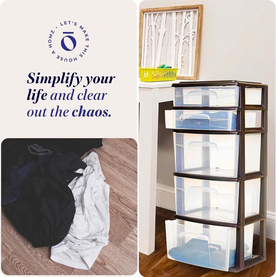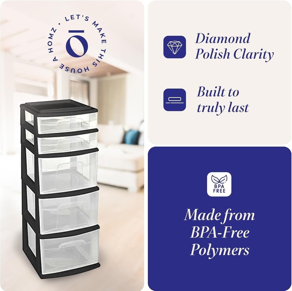 - Eco-Friendly 5-Tier Drawer Tower - Clear Plastic Bin for Organized Living