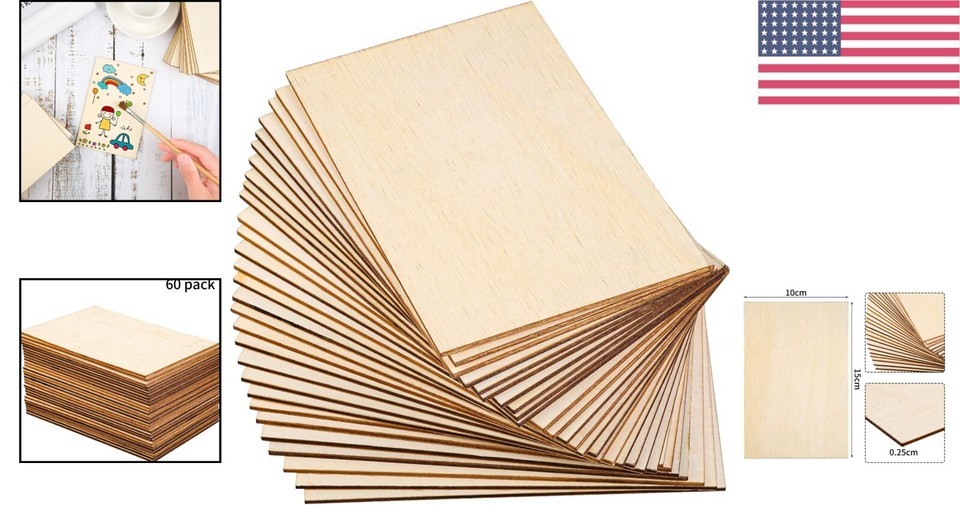 - Eco-Friendly 60 Pack of 6x4 Inch Blank Wood for Crafting & Customizing