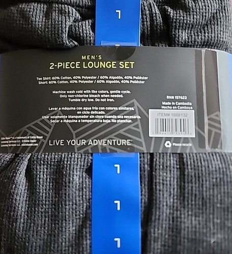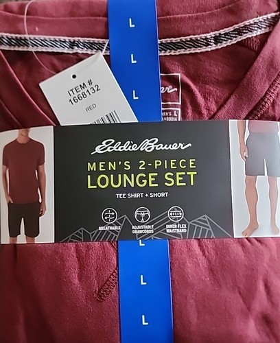 This Sale is for One (1) Eddie Bauer? Lounge Set Men's Size Large (L) Shorts Short Sleeve Tee Set Gray Waffle Knit Shorts ~ 2 Side Pockets ~ Elastic Waistband ~ External Drawcord Burgundy Tee-Shirt ~ Crew Neck ~ Pullover ~ Short Sleeve Inseam measures approximately 9" Lightweight Breathable Adjustable drawcord Inner flex waistband 60% Cotton, 40% Polyester Machine wash ~ Tumble dry This lounge set is new with tags Please view photos for a good description of this item Thank you!