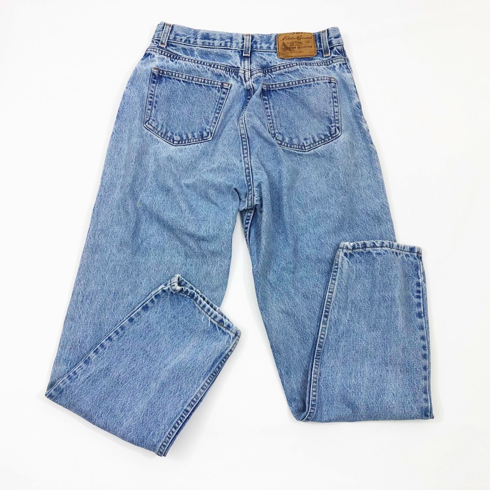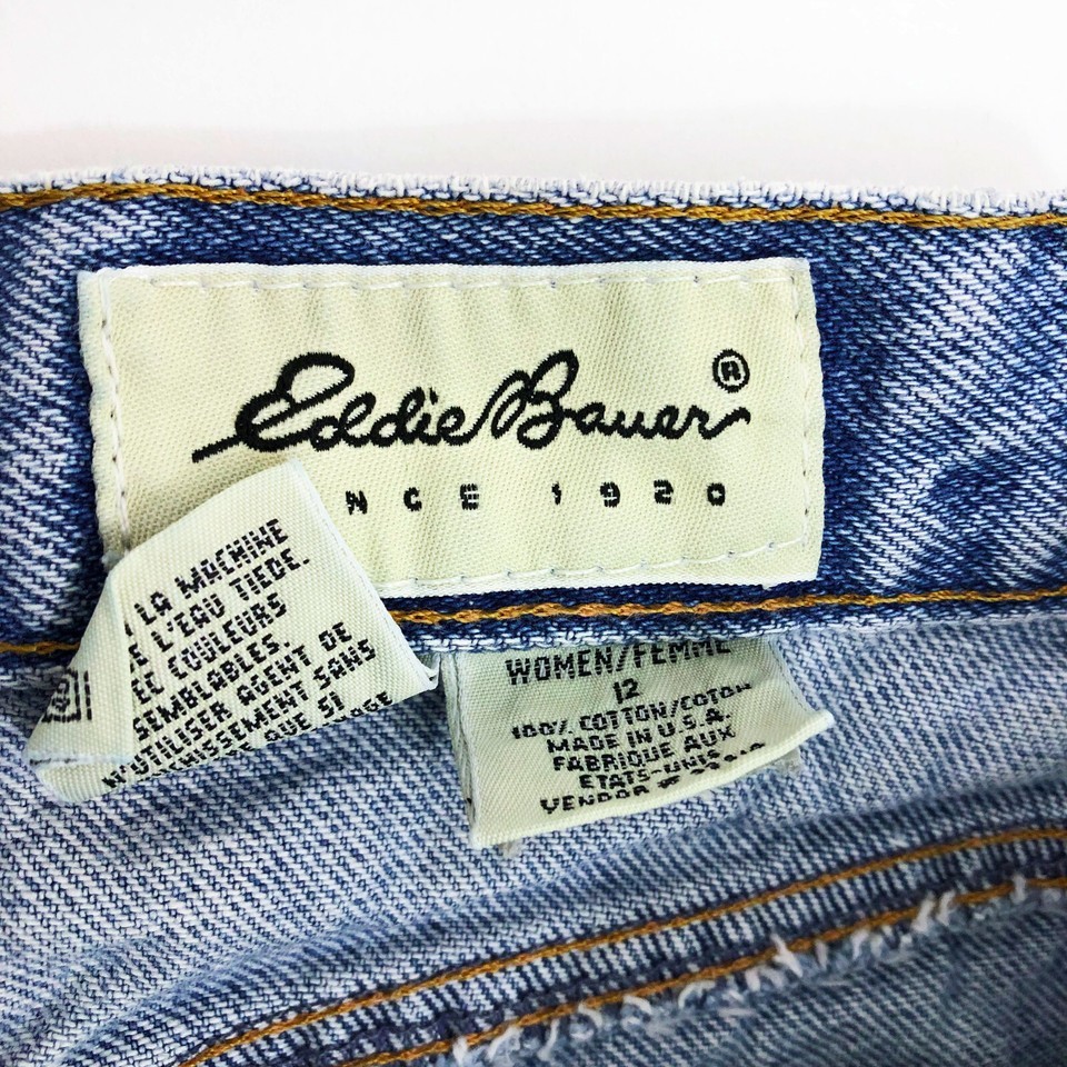 Good Used Condition. These 100% cotton medium wash blue jeans, women's size 12 are in good condition. They show normal signs of wear such as some fraying on the hem. There is also a light pink stain above the left front pocket near the belt loops. These would make great jeans for yard work etc. No rips or tears. See the pictures Brand Eddie Bauer 100 % Cotton Women's size 12 Waist 14 inches inseam 28.5 inches total length 41 inches Hip width 14 inches Rise 12 inches Ankle width 6 inches Check the size picture for specific measurements SKU YY-0-04-24-016 Yes, we combine orders for shipping whenever possible. If did not combine the shipping on your order correctly when we combine the items and check the shipping, if it is less than the shipping charges that you paid, we will issue you a refund for the difference.