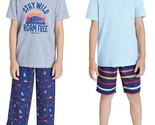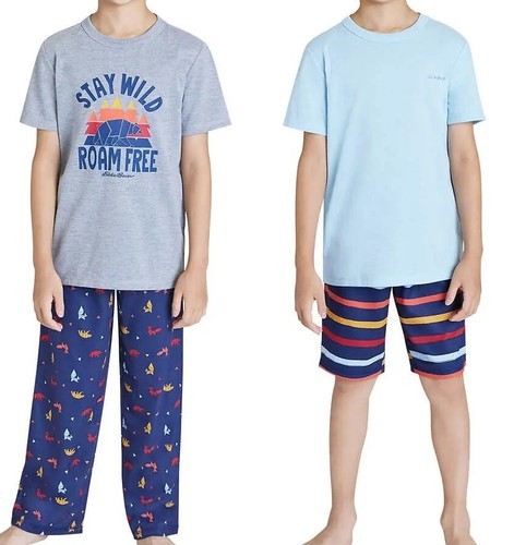 This sale is for One (1) Eddie Bauer Kids 4-Piece Sleep Set Size (XS) 5-6 Grey Heather ~ Stay Wild - Roam Free Two (2) Short Sleeve Tops ~ Crew Neck One (1) Pant One (1) Short 100% Polyester Flame Resistant Pullover Tops Pull-On Pants Machine wash ~ Tumble dry Pajamas are new in original packaging Please view photos for a good description of this item Thank you!