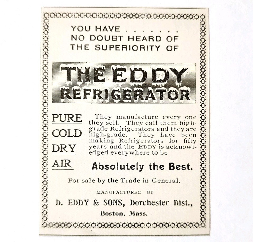 Primary image for Eddy Refrigerator Boston Mass 1897 Advertisement Victorian Appliance ADBN1A7
