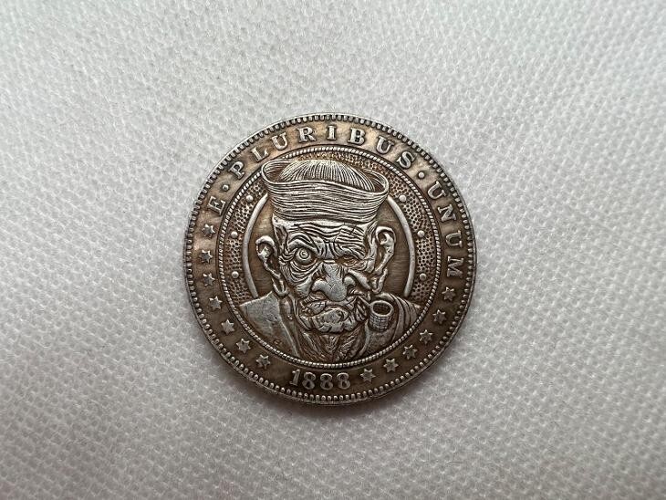 Scopri il fascino unico della Special Edition Morgan Dollar - Eccentric Man Fantasy Coin, un accattivante oggetto da collezione che aggiunge un tocco distintivo a qualsiasi collezione numismatica. Questo pezzo di nuova coniazione, ispirato all'iconico dollaro Morgan del 1888, presenta una stravagante raffigurazione di un eccentrico signore anziano con viso e pipa rugose, che mostra una miscela di umorismo e arte.La parte anteriore della moneta conserva la classica iscrizione "E Pluribus Unum" insieme all'anno 1888, rendendo omaggio al tradizionale dollaro americano introducendo un tocco moderno giocoso attraverso il suo design non convenzionale. Il rovescio presenta il noto motivo dell'aquila, che ricorda l'originale dollaro Morgan, collegando abilmente il passato con il presente.Anche se non realizzata in argento, questa moneta e realizzata con meticolosa attenzione ai dettagli, rendendola un manufatto intrigante per collezionisti e appassionati di oggetti numismatici unici. La combinazione di simboli tradizionali infusi con senso dell'umorismo rende la moneta Eccentric Man Fantasy un'aggiunta indispensabile per qualsiasi collezionista serio o per coloro che cercano un regalo distintivo. Prova il fascino di questo pezzo eccezionale e migliora la tua collezione oggi stesso.