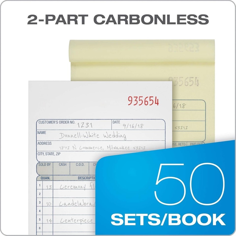Two-Part Carbonless Forms: Each order book includes 50 sets of forms, providing a perforated white top copy for customers and a yellow duplicate for your records.