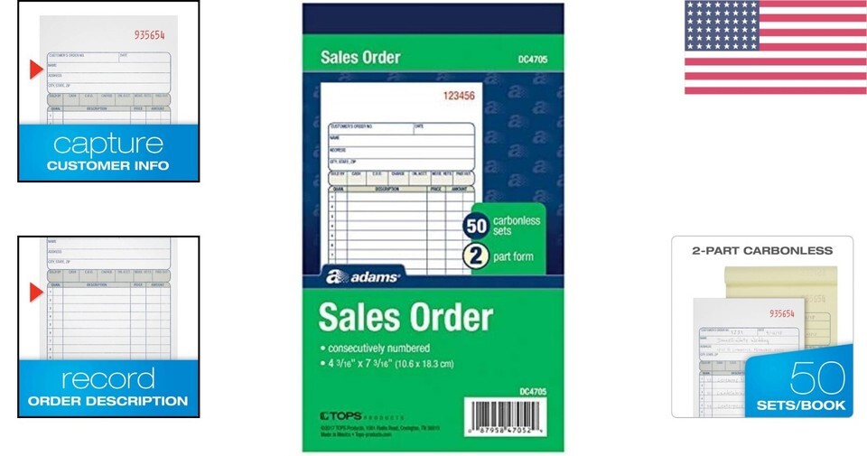 Consecutively Numbered: Large 6-digit numbers located in the upper right-hand corner streamline the order process, making it easy to thumb through orders quickly.