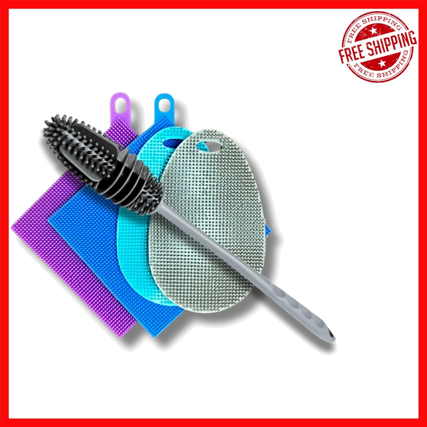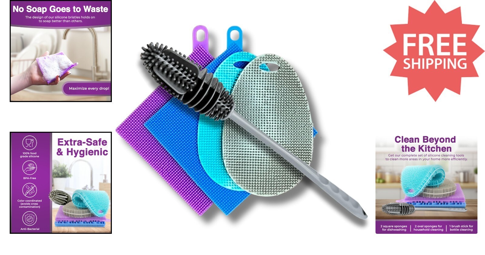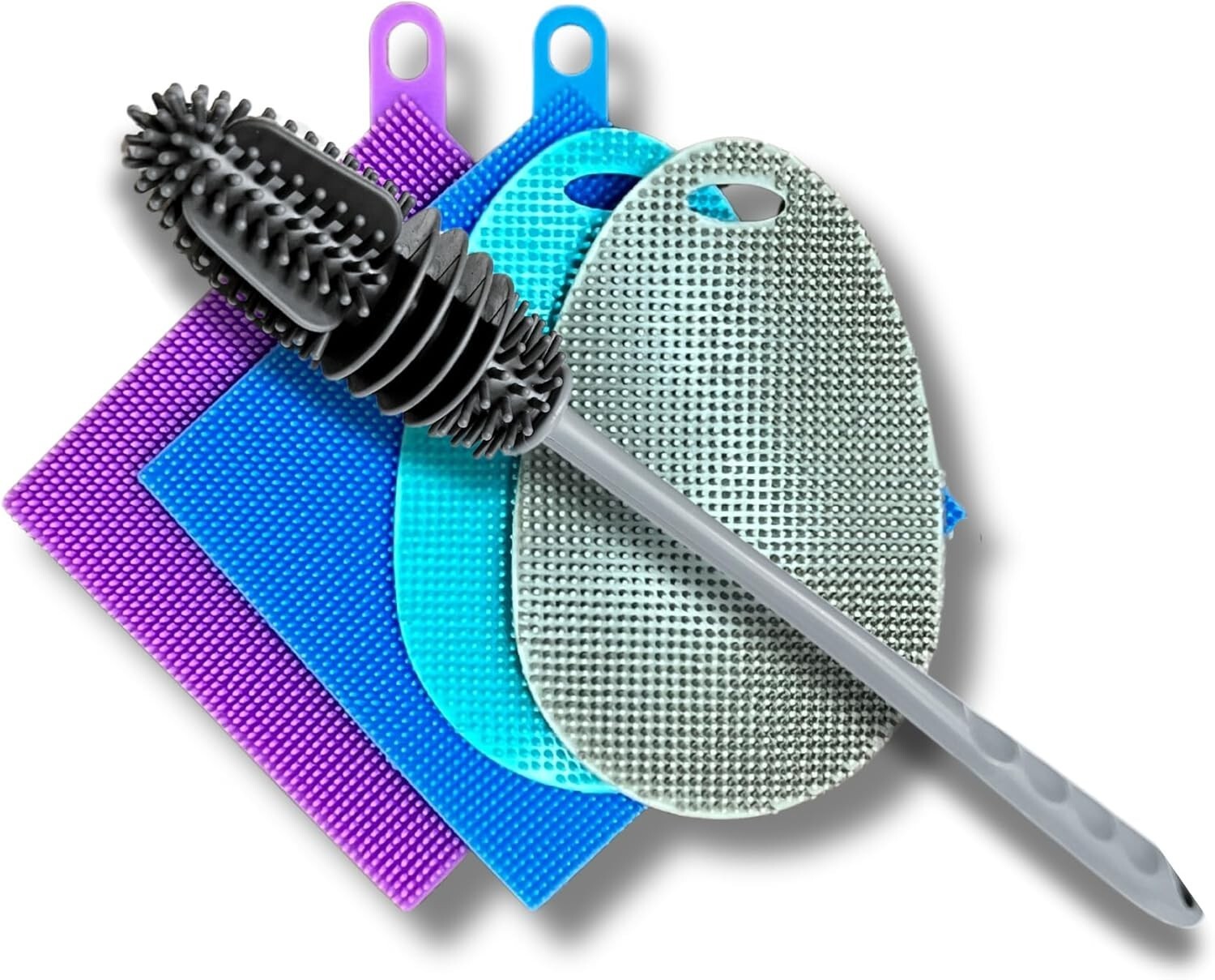 - Efficient Dual-Sided Kitchen Sponges - 5-Pack Food-Grade Silicone & Brush Set