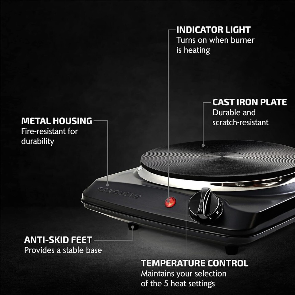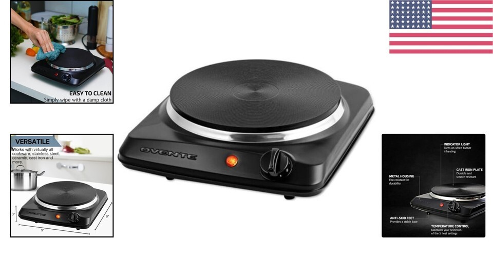 Powerful Performance: Equipped with a robust 7.25? cast-iron plate, this cooktop operates at 1000 watts (120V), ensuring quick heating and evenly cooked meals. Ideal for frying, boiling, and keeping your dishes warm.