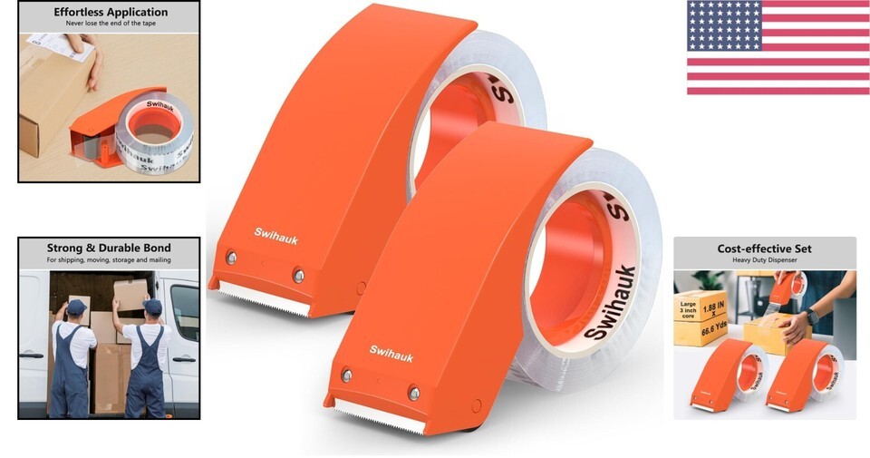 - Effortless Application Packing Tape with 2 Dispensers - Ideal for Moving & Mail