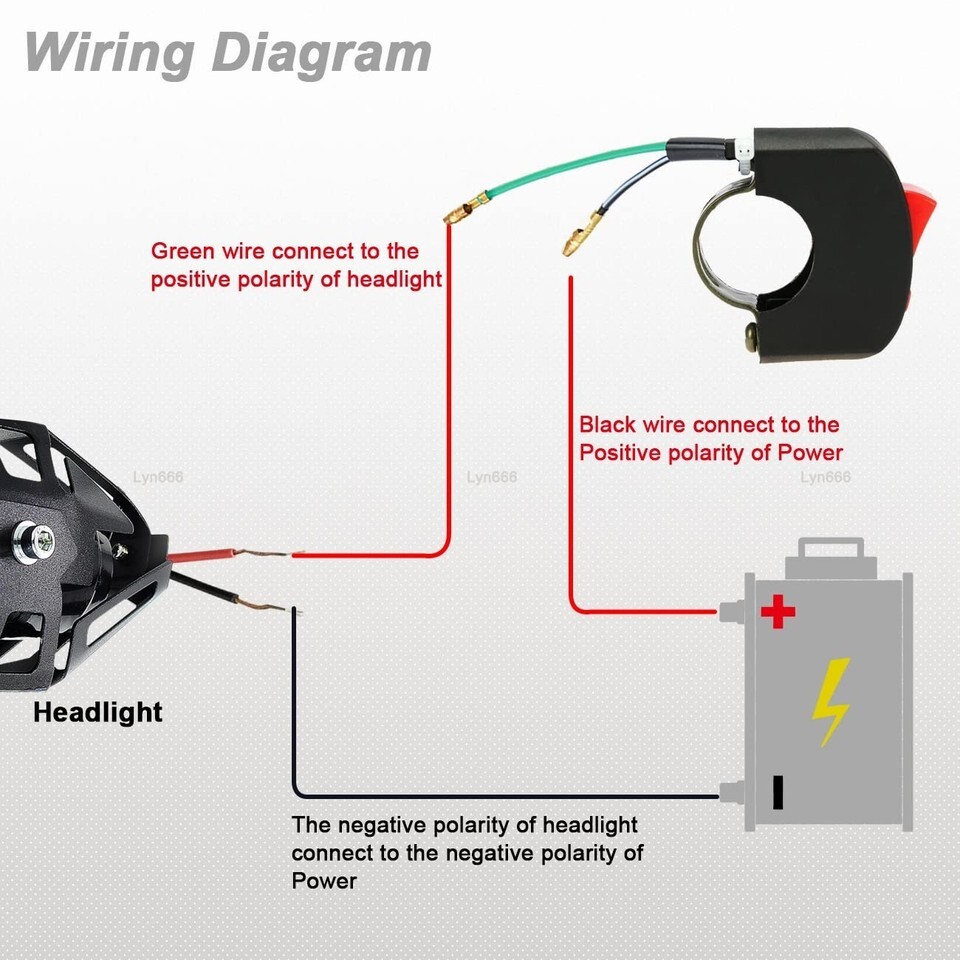 Simple Installation: Features an easy ON/OFF switch mechanism; connect the green wire to the positive pole of the headlight and the black wire to the positive pole of the power supply.