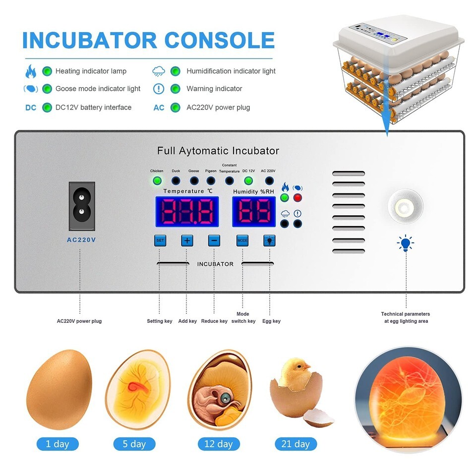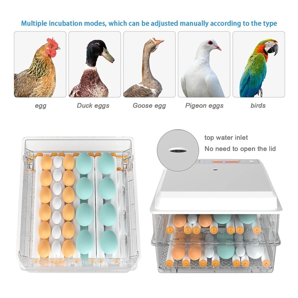 High-Capacity Egg Incubation ? Designed to hold and hatch up to 120 eggs at once, this incubator is perfect for farms and poultry breeders. Compatible with quail, duck, parrot, chicken, and other bird eggs.