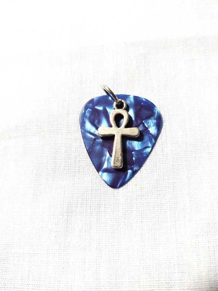 - EGYPTIAN ANHK ON MEDIUM BLUE GUITAR PICK DOUBLE PENDANT ADJ MUSICAL NECKLACE