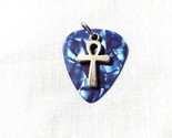 NEW - MEDIUM BLUE CELLULOID GUITAR PICK WITH A SILVER ALLOY EGYPTIAN ANHK CHARM PENDANT NECKLACE