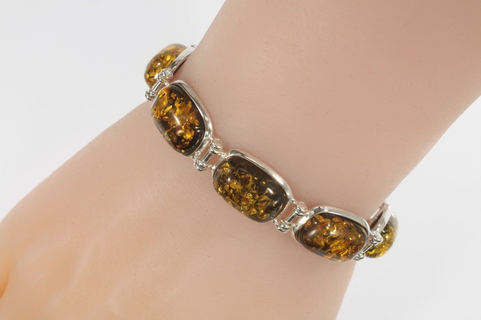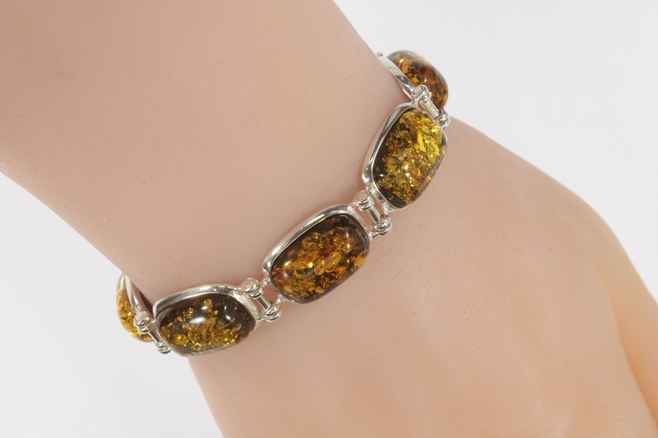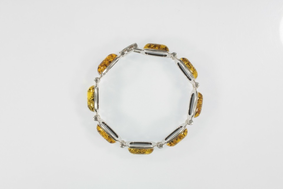- Eight Stone Yellow Amber Statement Piece Sterling Silver Bracelet!