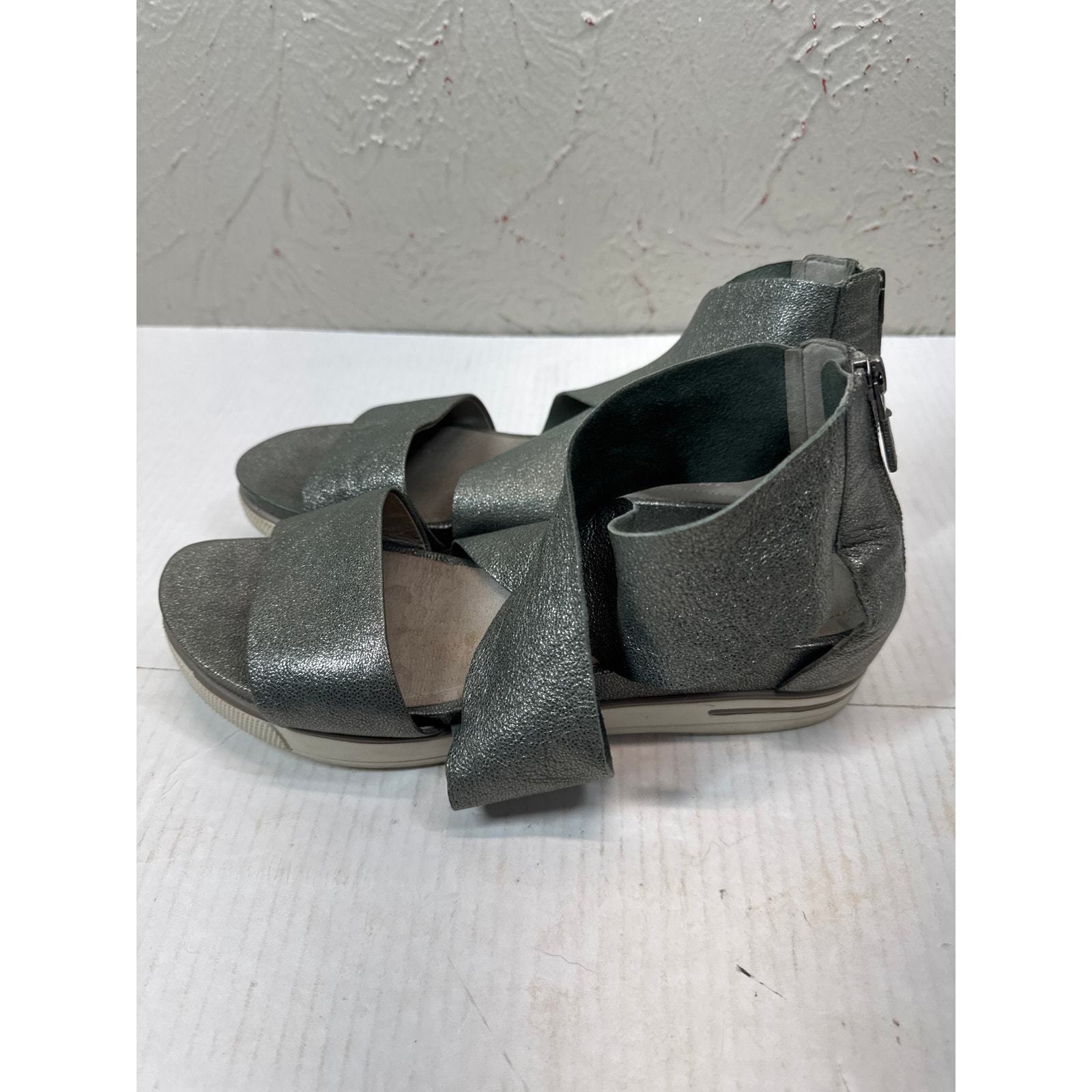 - Eileen Fisher Genuine Leather Silver Metallic Sport Cross Strappy Sandals Sz 10