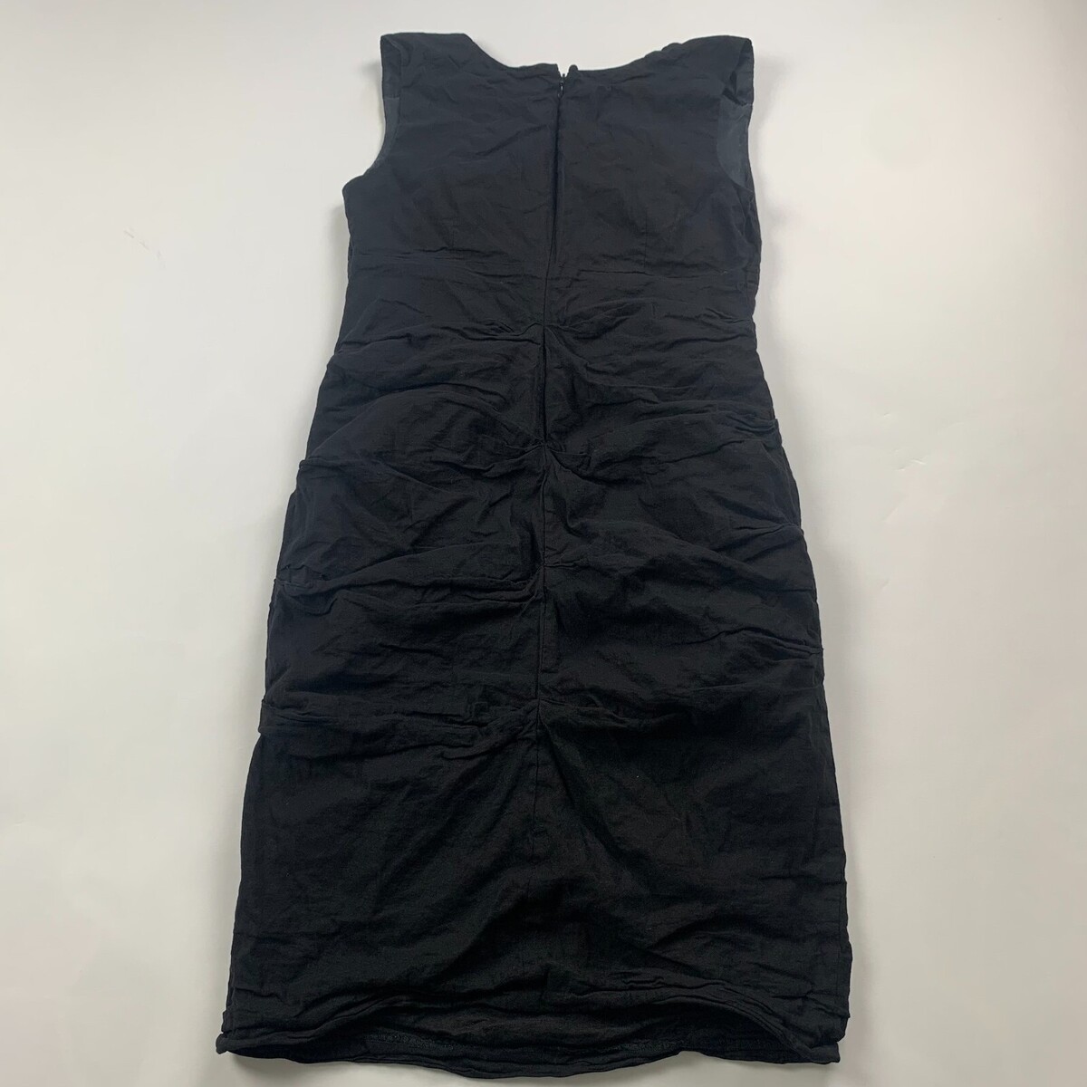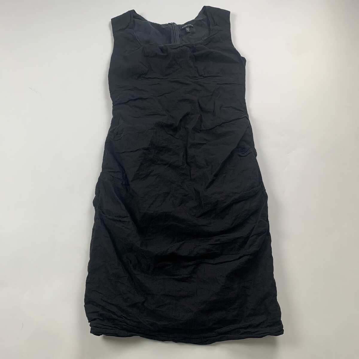 Eileen Fisher Womens Dress Black Size 12 Sleeveless Round Neck Knee Length Materials: 75% Cotton 12 % Nylon 8% Metallic 5% Spandex Solid Ruffled Zipper Dry Clean Only Pit to Pit - 17 inches Length - 35.5 inches Good pre-owned condition. U11S400