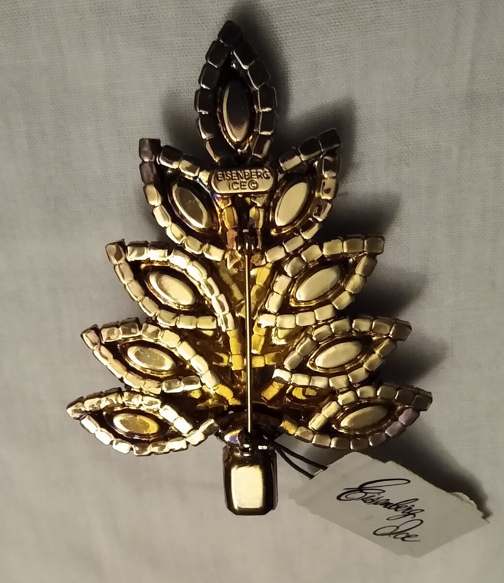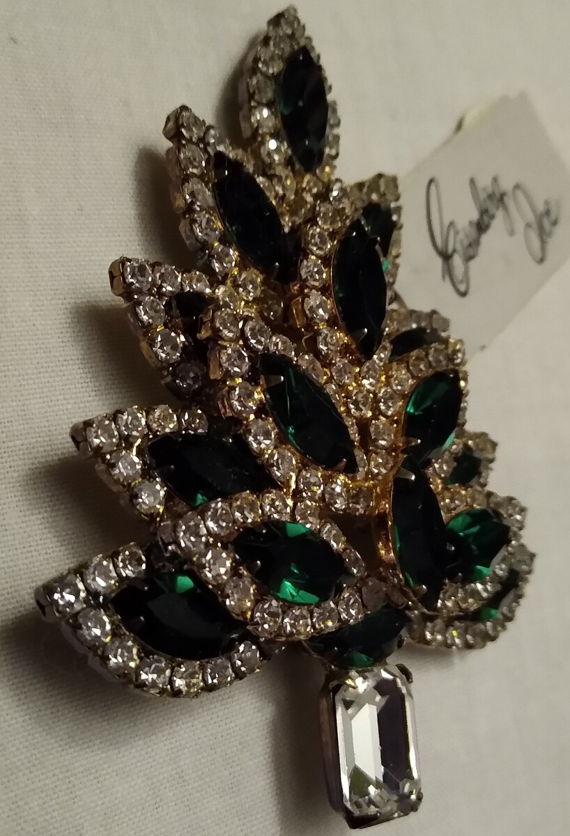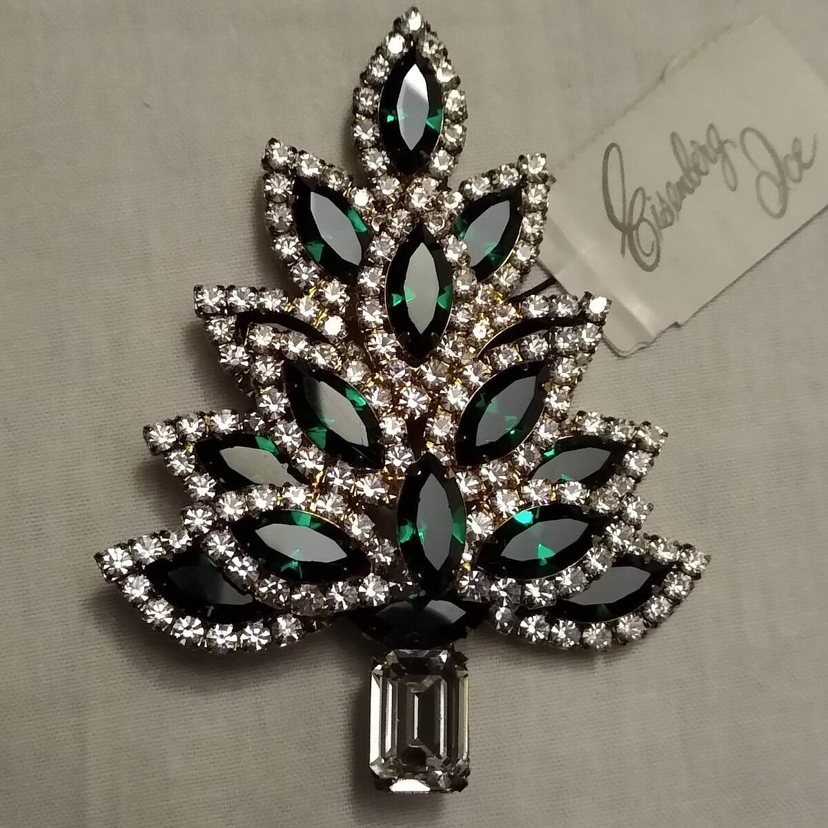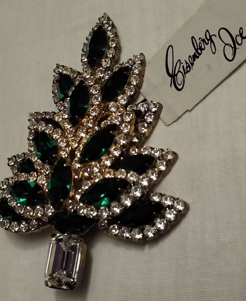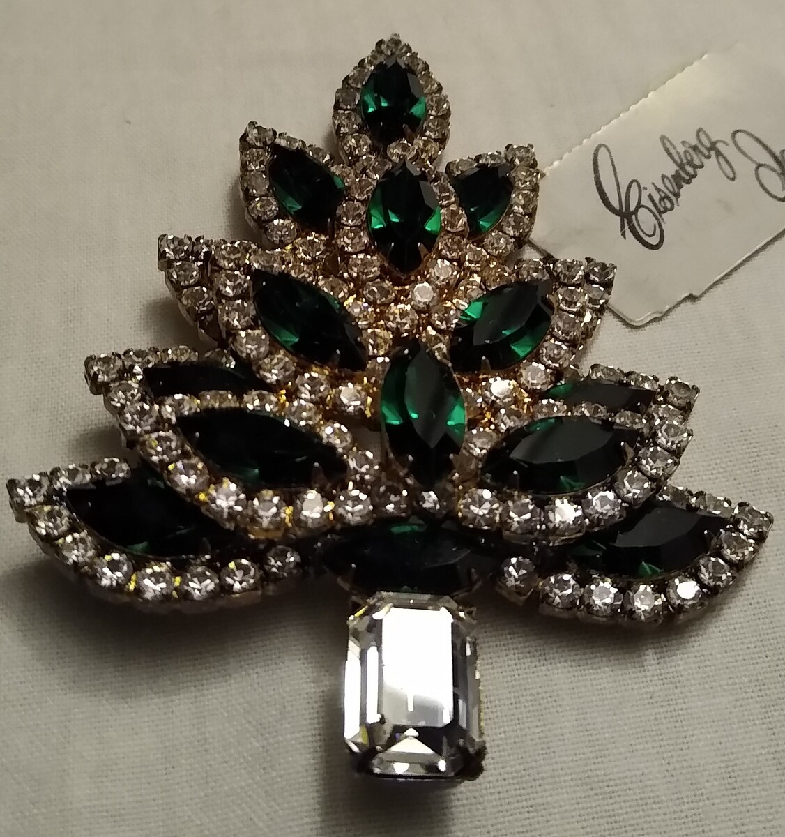 Rare find! Stunning Eisenberg Ice Emerald green and clear rhinestone Christmas tree brooch. A book piece with which to make a statement.
