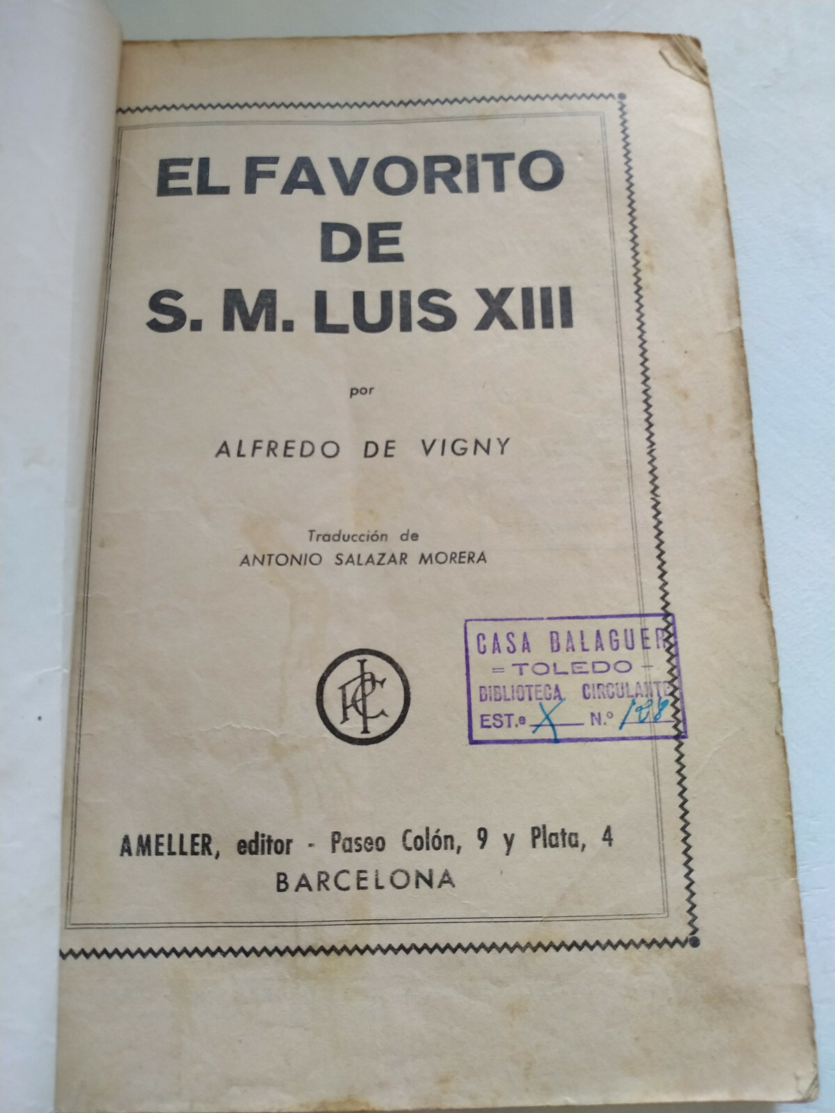 El Preferito de Luis XIII Alfredo de Vigny Ameller 1965 - Libro Spagnolo Am