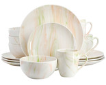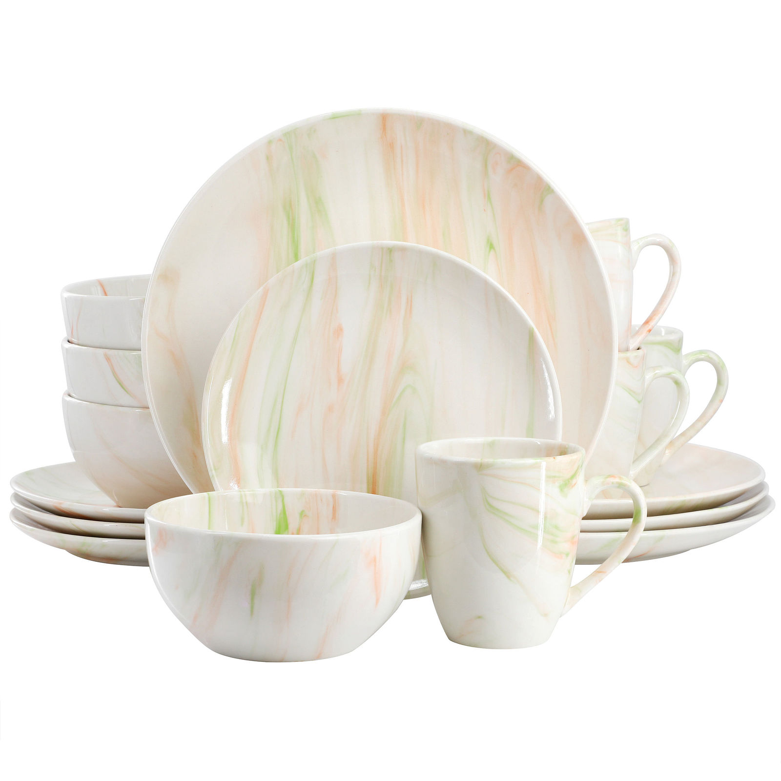 - Elama Fine Marble 16 Piece Porcelain Dinnerware Set in Orange and Green