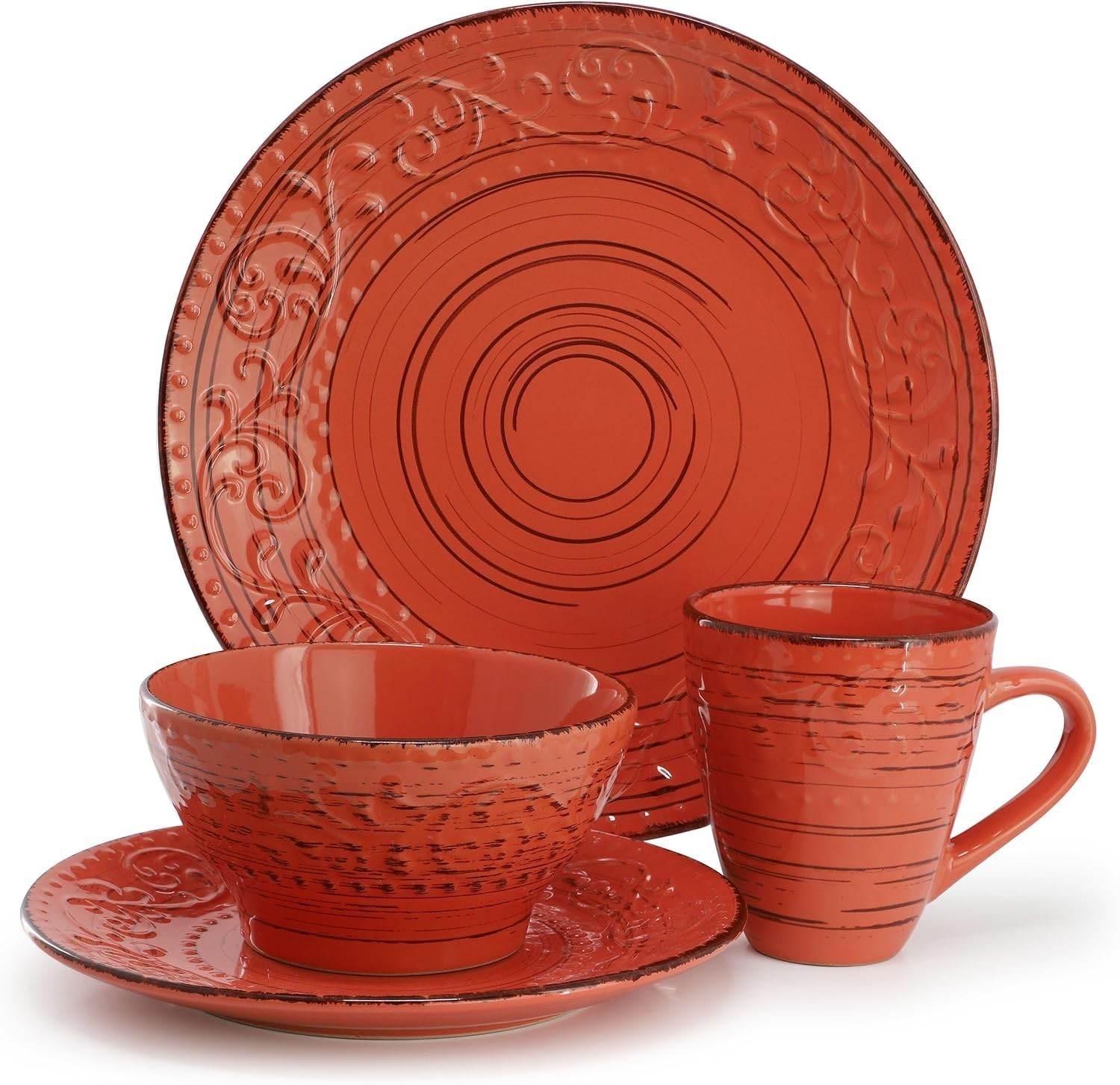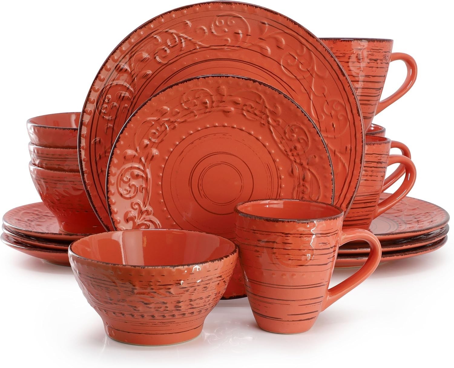 - Elama Malibu Jasper 16-Piece Stoneware Dinnerware Set in Orange