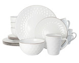 Elama's Luxurious Medici Pearl 16 Piece Dinnerware Set in Slate and Stone Pearl with Setting for 4