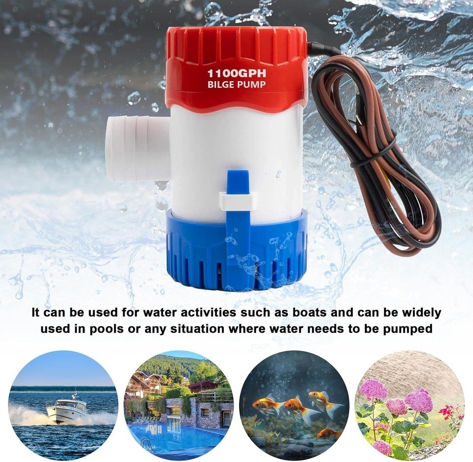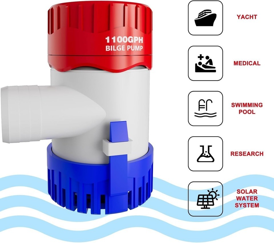- Electric 1100 GPH Bilge Pump - Low Noise 12V Submersible Marine Water Solution