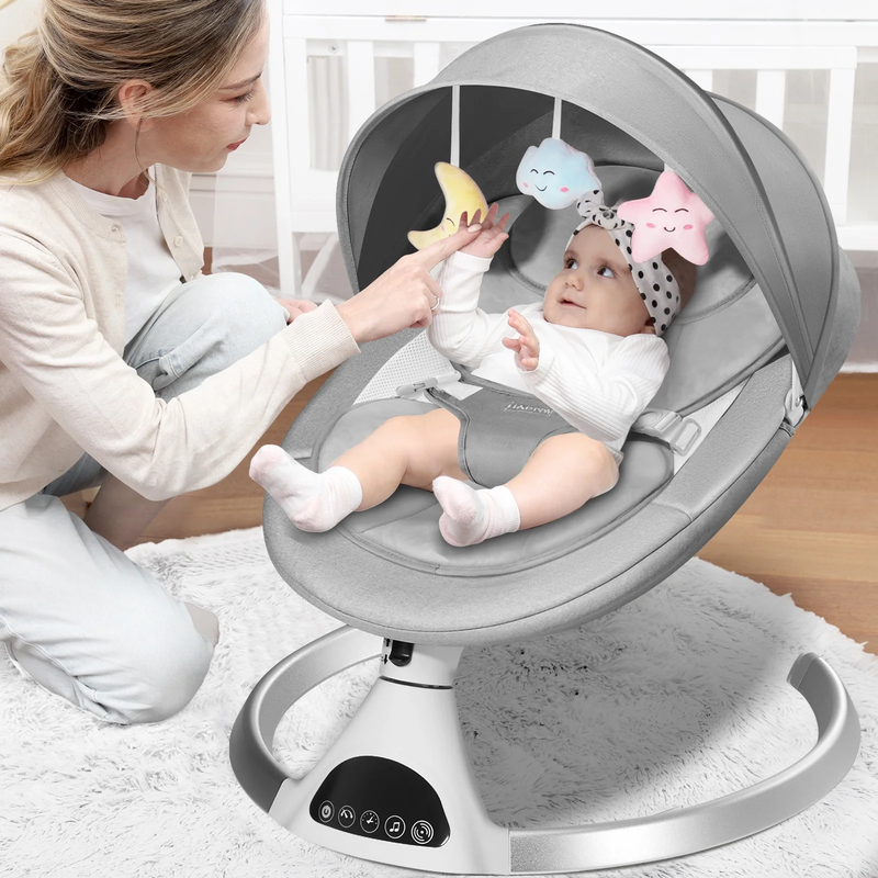 - Electric Baby Swing for Infants with Bluetooth Music, 5 Sway Speed, Remote Contr