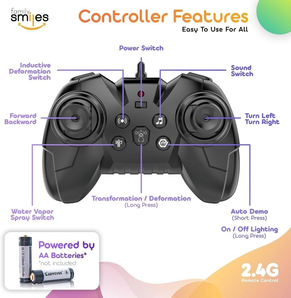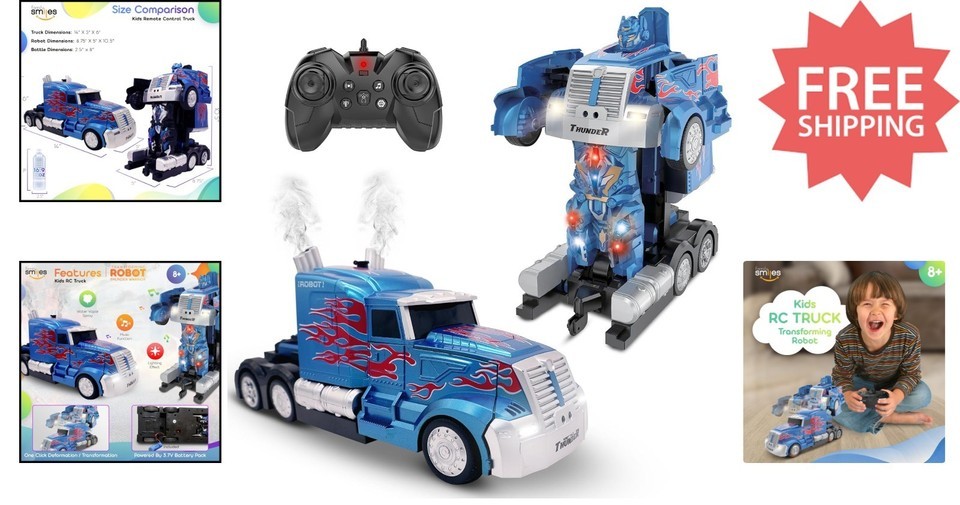 Discover the ultimate remote control adventure with our Transforming RC Car and Robot Truck! This exciting set features a 14" RC truck and an 8.75" robot, both capable of stunning 360 spins, complete with dazzling lights, music, and vapor effects. The kids' RC robot easily transforms with a simple hand gesture via inductive deformation, adding an interactive layer of fun. Designed for boys ages 8-13, these toys are perfect for unleashing creativity and excitement. The RC truck is rechargeable with a USB cable, powered by a 3.7V battery, while the robot requires 2 AA batteries (not included). Gear up for hours of thrilling play! To ensure fast and reliable delivery, we work with multiple fulfillment partners and suppliers. Depending on availability and location, your order may ship from different warehouses or arrive in packaging that varies from item to item. Tracking details are typically provided shortly after shipment, and customer satisfaction remains our top priority. Please note that due to carrier policies and regional regulations, certain items may not be eligible for delivery to specific states or territories.