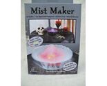 Electric Mist Maker with AC Adapter. Also has a mist deflector. Uses regular tap water. Put some creepy into your halloween props or display. Use this to create a mist, fog or smoke effect from your bowl, cauldron or bucket props for your Haunted house or Halloween Party. The lights change color and gives the water in the container a colored glow. The mist itself is not colored. Many creative uses. Includes UL approved adapter. Instructions on back of package.