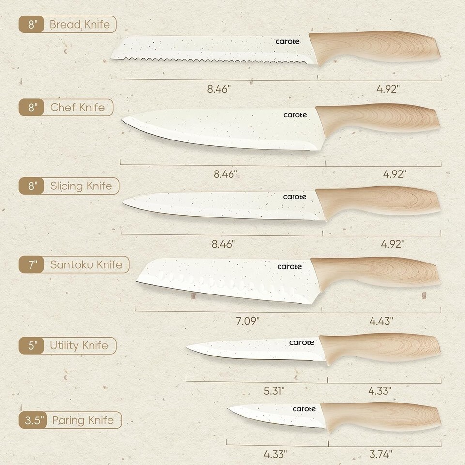 Easy Carry: Each knife comes with a protective blade guard for safe storage in kitchen cabinets and convenient portability, perfect for camping or RV excursions.