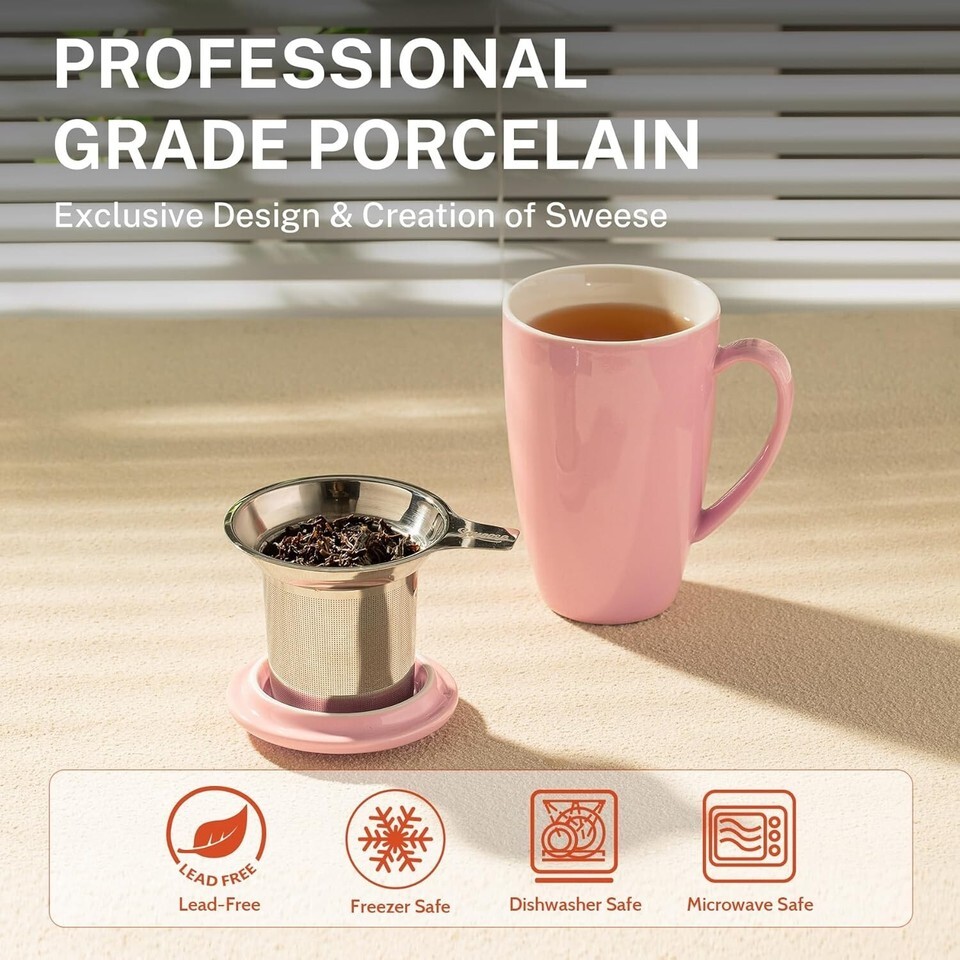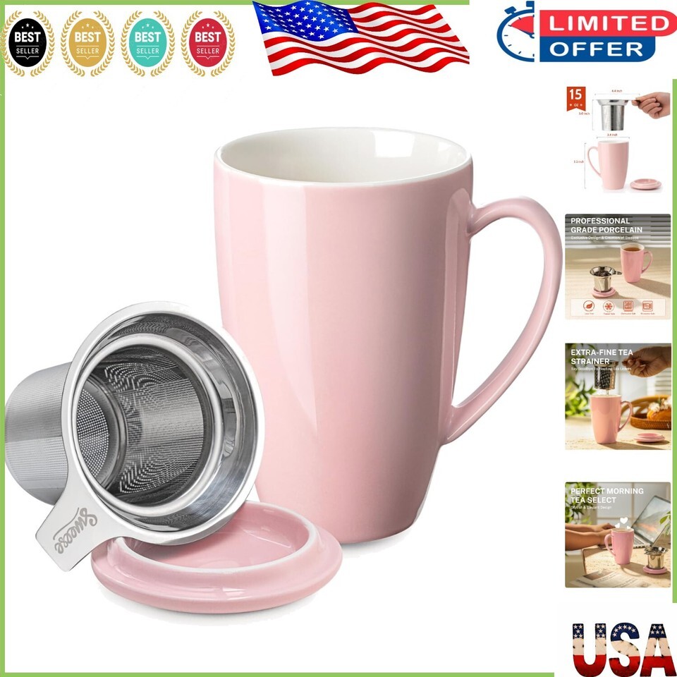 Elegant 15 OZ Porcelain Tea Cup with Lead-Free Infuser & Lid - Perfect Gift