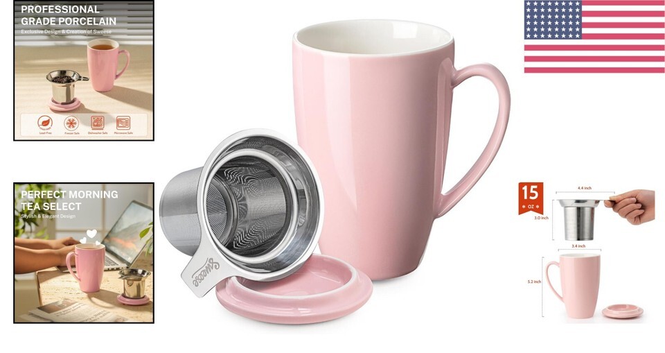 Elegant 15 OZ Porcelain Tea Cup with Lead-Free Infuser Lid - Perfect Gift