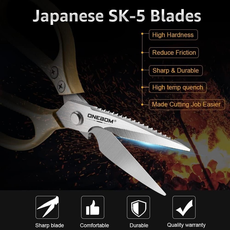 ***High-Quality Japanese SK5 ***: Our kitchen shear blades are crafted from premium Japanese high-carbon SK5 , offering superior sharpness and edge retention.