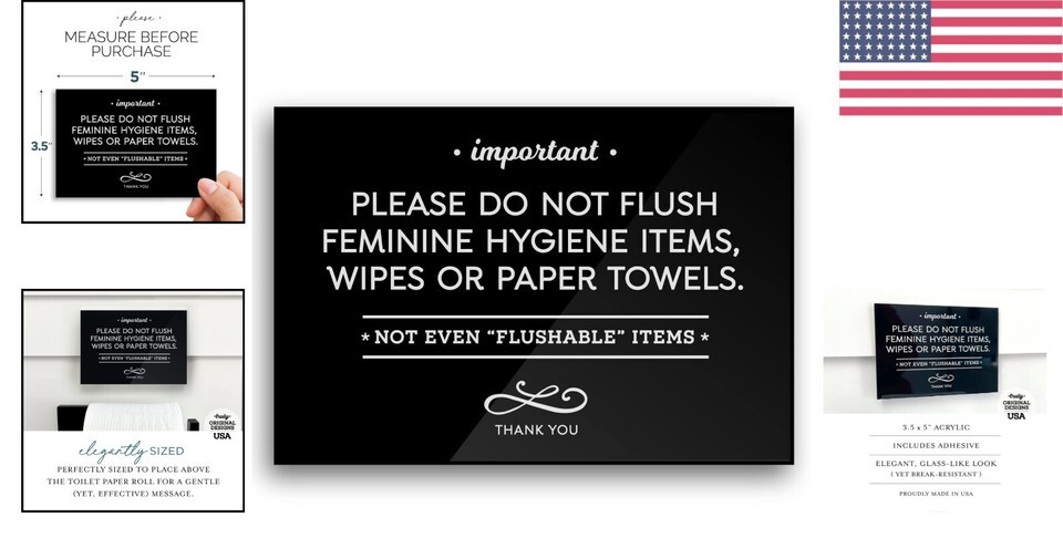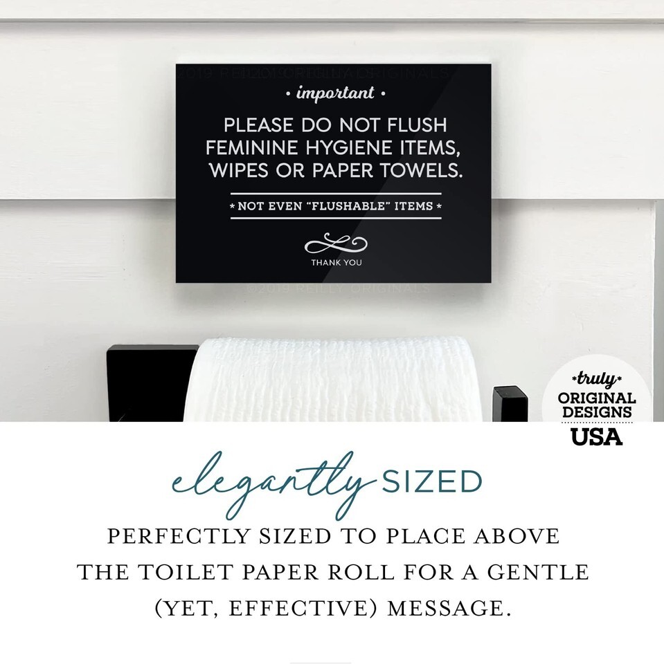 - Elegant 3.5x5 Inch Bathroom Sign: Do Not Flush Feminine Products & Wipes