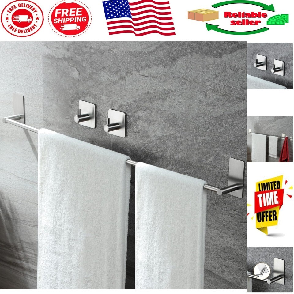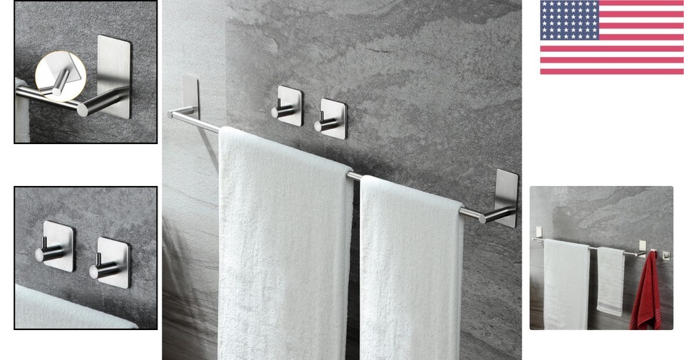 - Elegant 32-Inch Stainless Steel Towel Bar with Adhesive Hooks - Rustproof Design