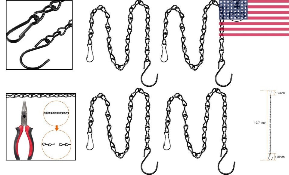 Transform your outdoor and indoor spaces with our exquisite 4-Pack 19.7 Inch Black Hanging Chains, designed perfectly for your planters and lanterns.
