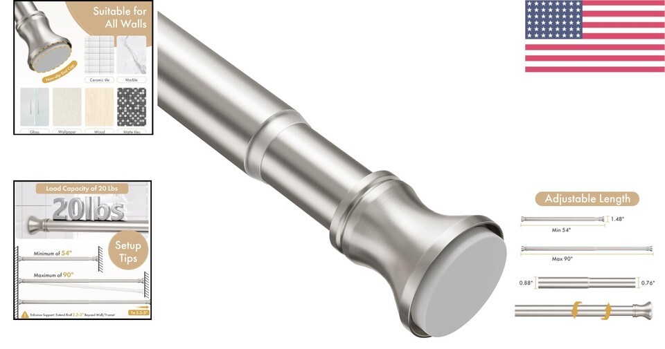 Adjustable Length: Effortlessly fits any shower stall with an adjustable length ranging from 54 inches to 90 inches. Customize your space without the hassle of measuring or cutting.