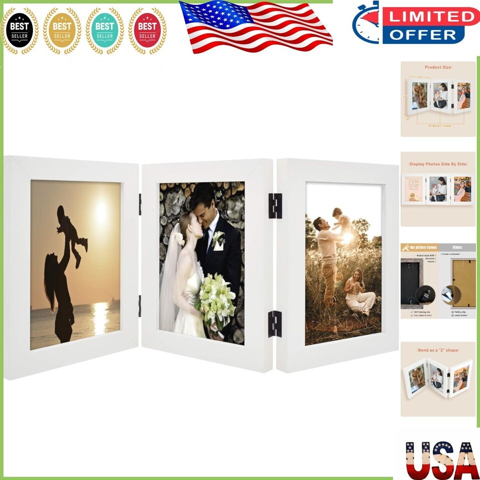 Elegant 5x7 Trifold Photo Frame - 3 Openings with Real Glass for Desktop Display