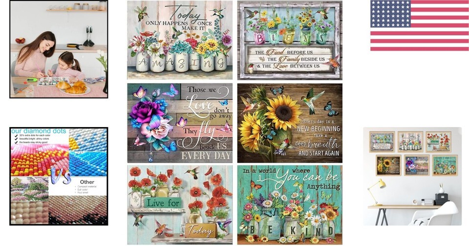 6 sets of 5D full drill diamond paintings, each individually wrapped.
