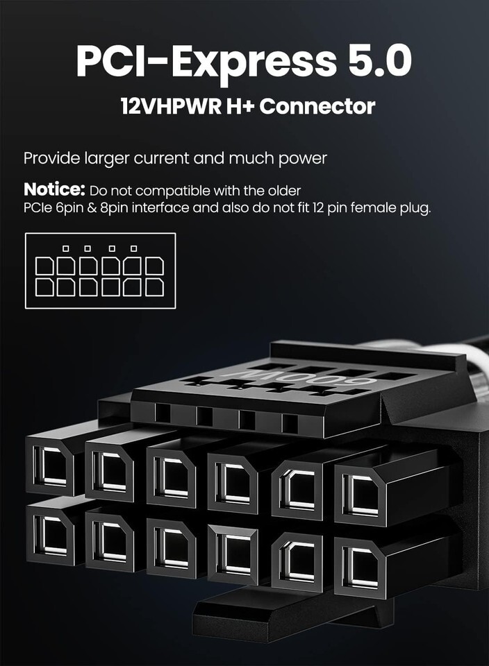 Don't settle for less when it comes to powering your graphics card; opt for the elegant and highly capable PCIe 5.0 power cable. Order today and experience the difference!