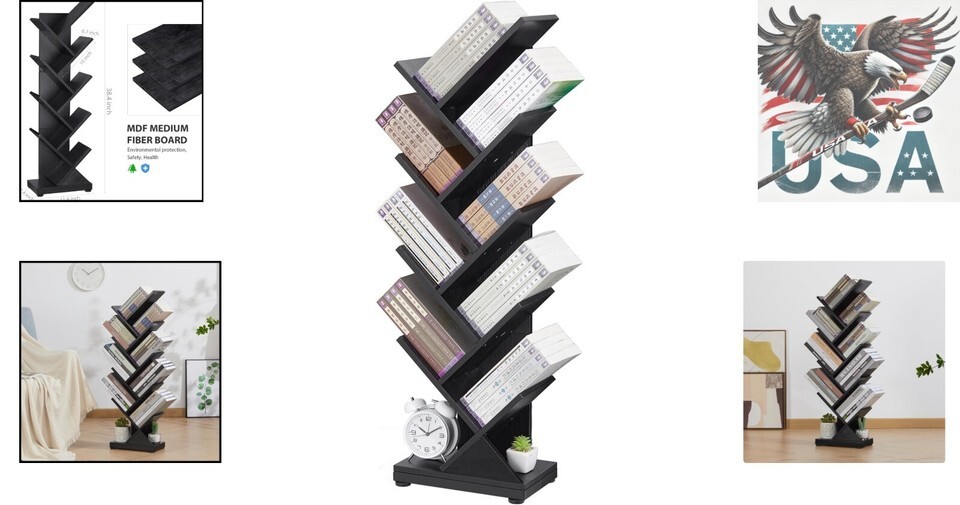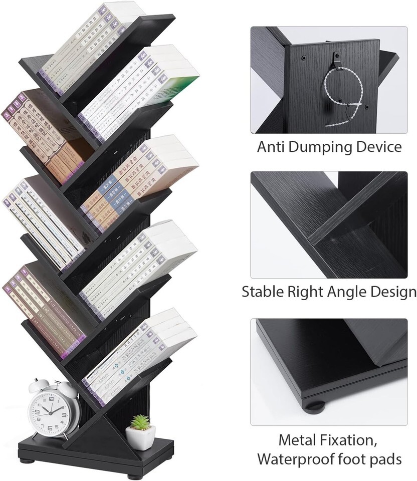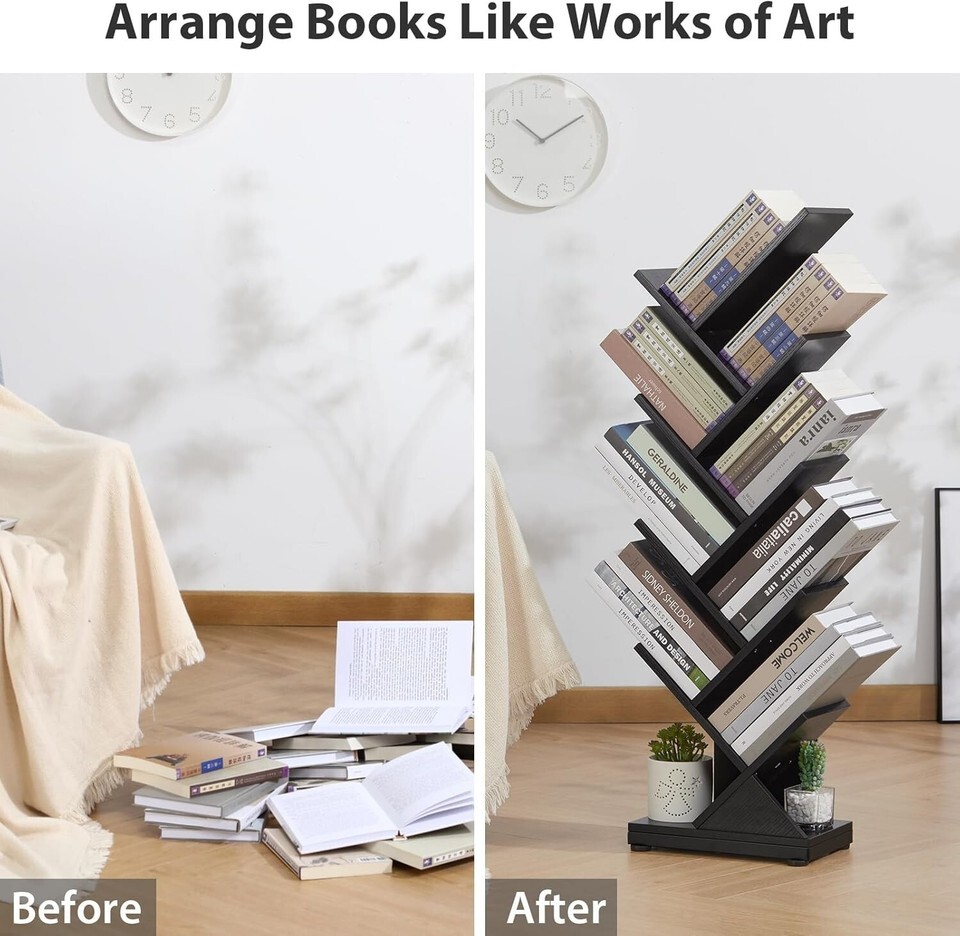 - Elegant 8-Tier Wood Bookshelf - Space-Saving Storage for Bedroom or Study