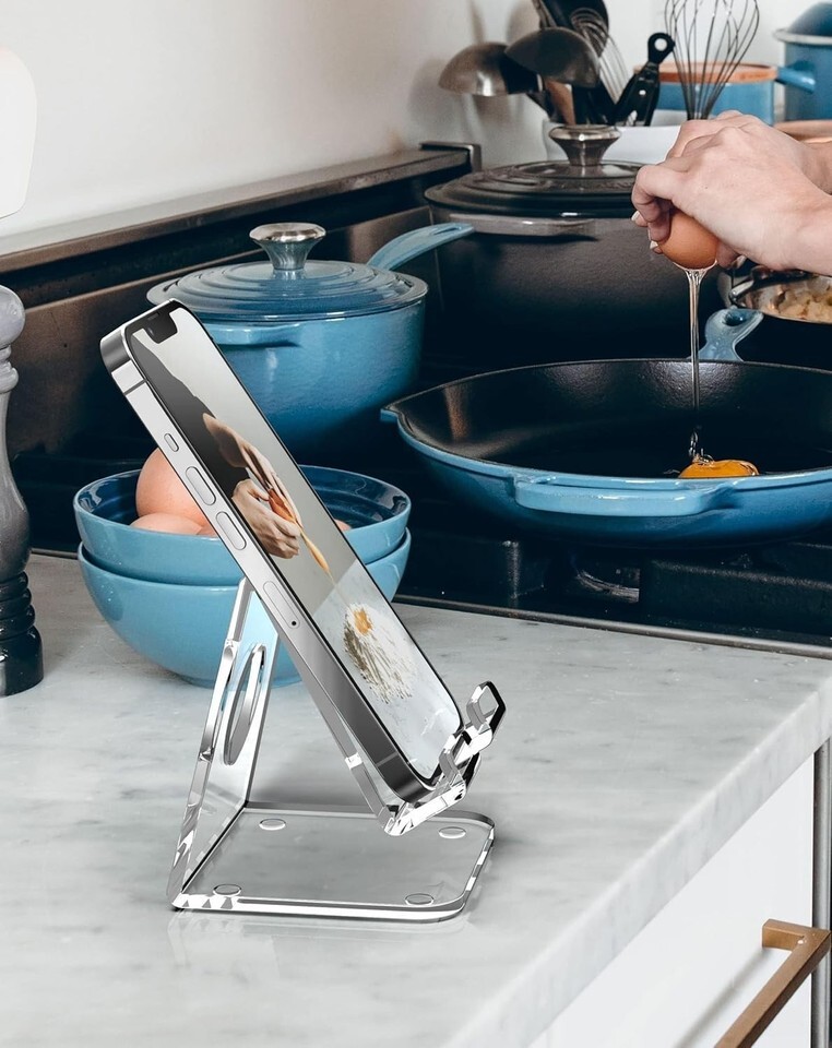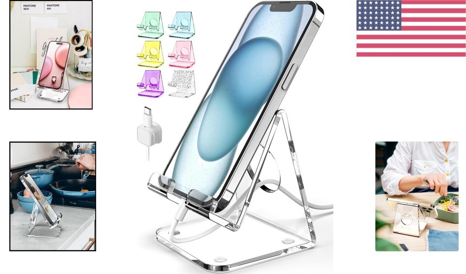 Elegant Acrylic Phone Stand - Universal Holder for Desk, Kitchen & Vanity