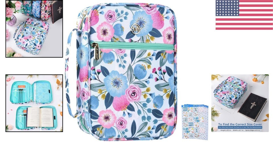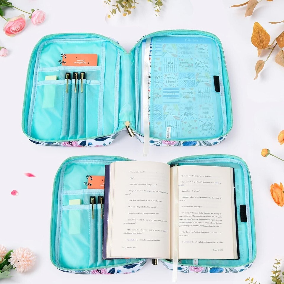 - Elegant Bible Cover Bag with Floral Design - 9.5x6.7x2.5 In, Zipper Closure