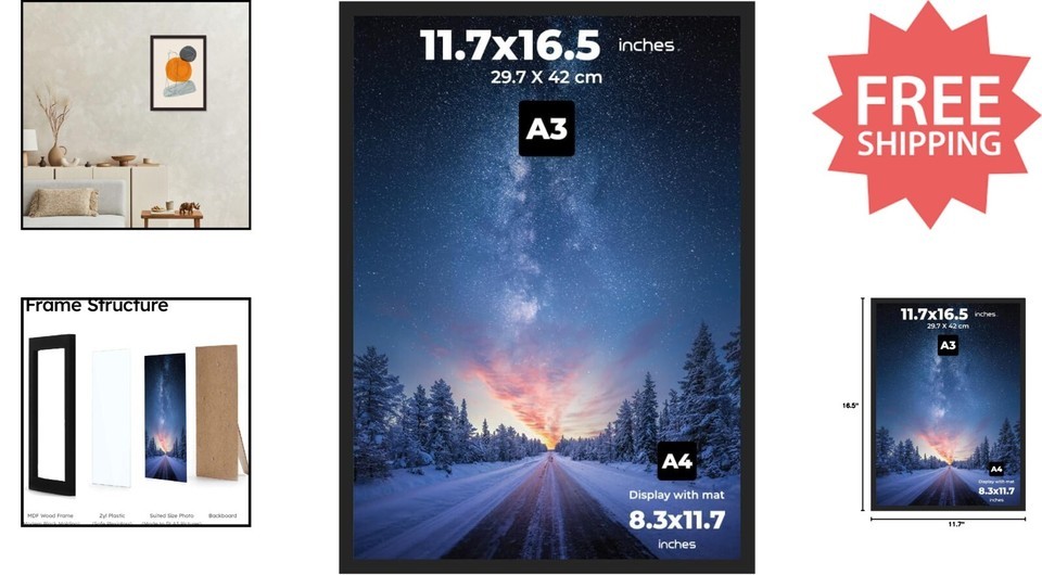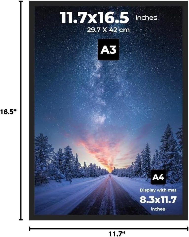- Elegant Black A3 Frame 11.7 x 16.5 inch - Versatile Wall Display with Hardware